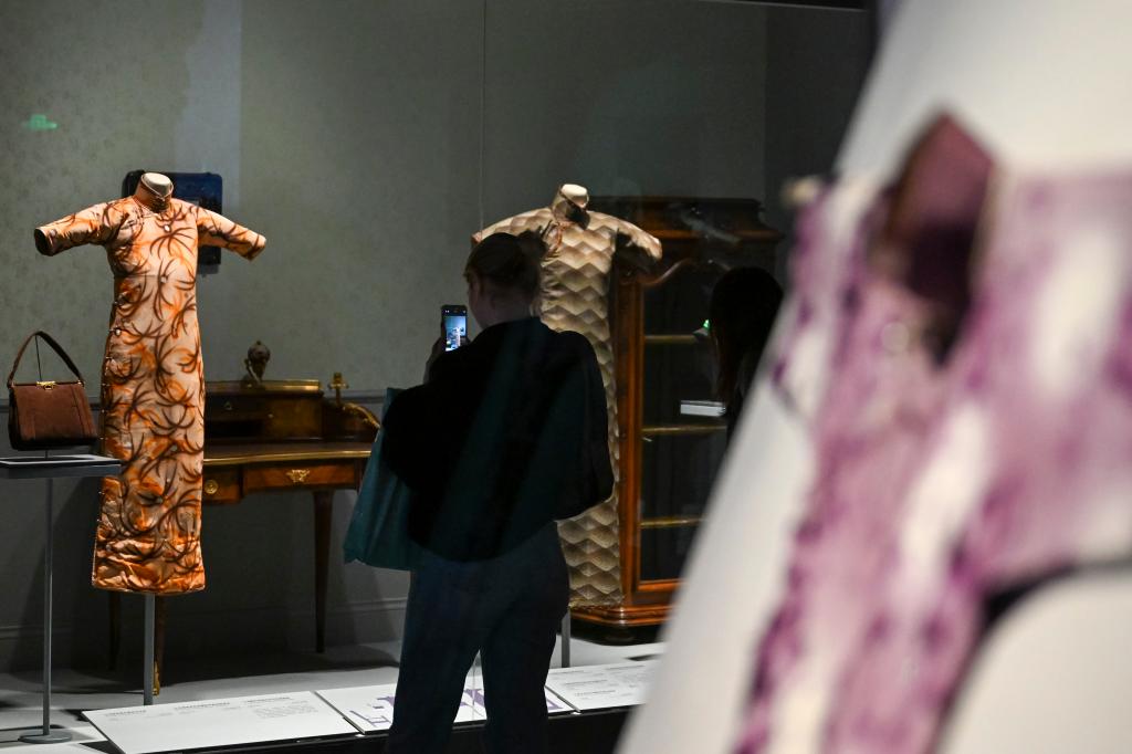 12月22日,觀眾在“摩登華影:海派旗袍與百年時尚”預展上拍攝展品。