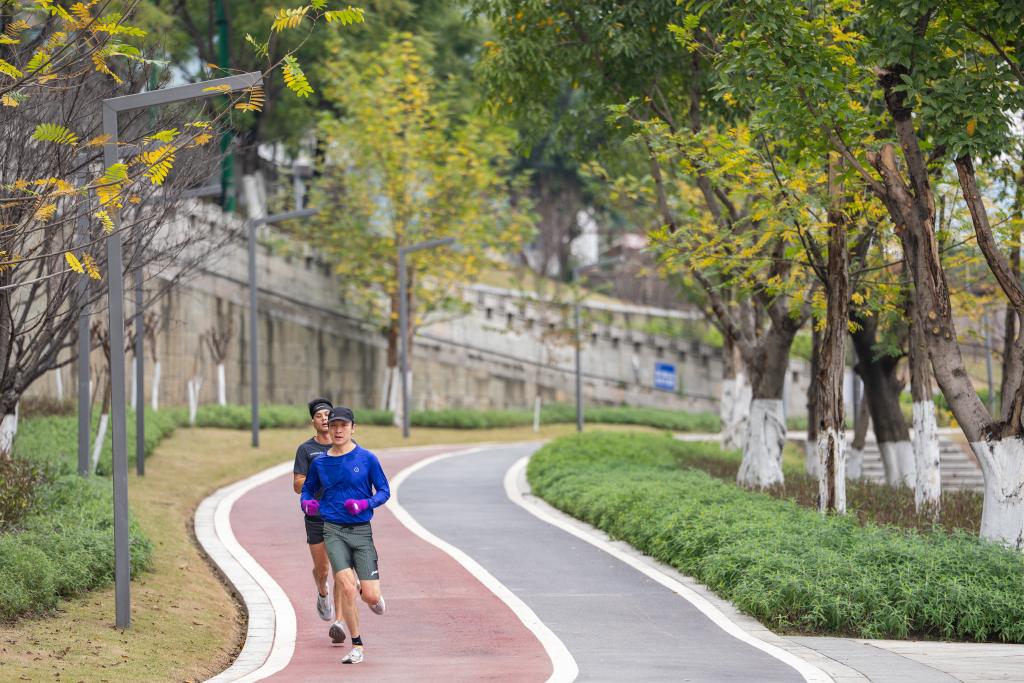 1月7日,市民在重慶市兩江新區北濱路江灘公園鍛煉。