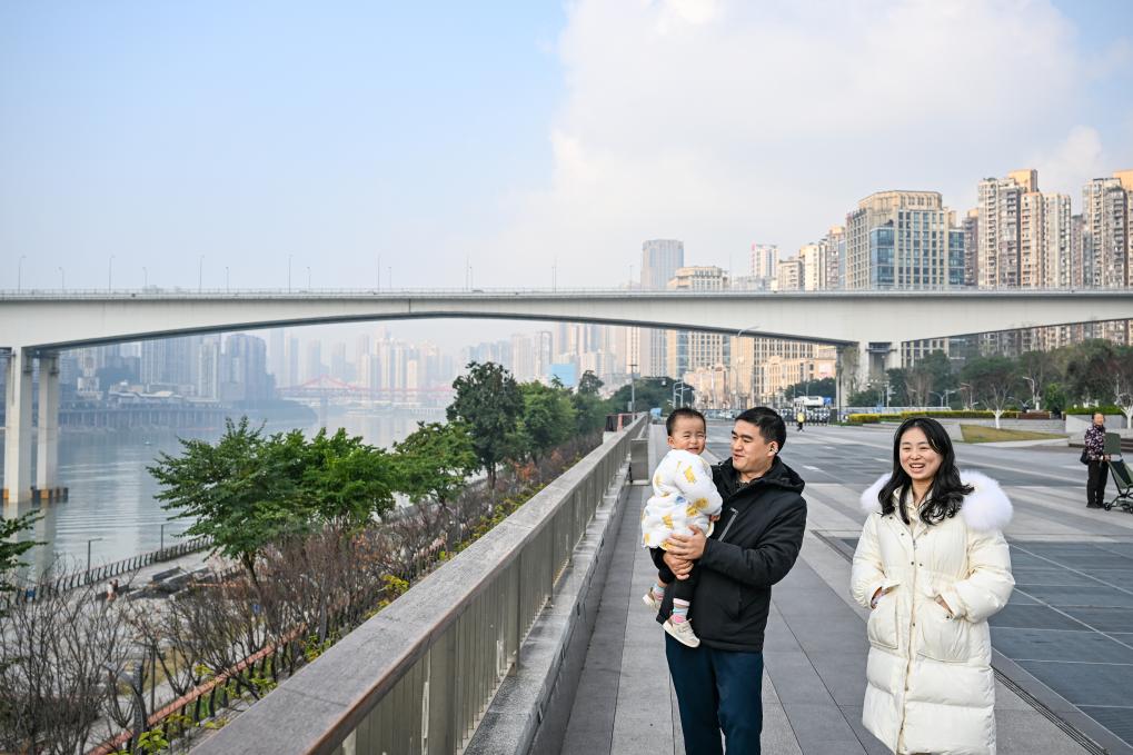 2026年1月5日,市民在重慶兩江新區江北嘴江灘公園休閒。