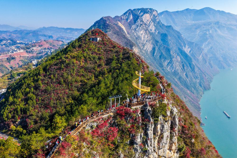 2025年11月29日,游客在重慶巫山三峽龍脊游覽(無人機照片)。