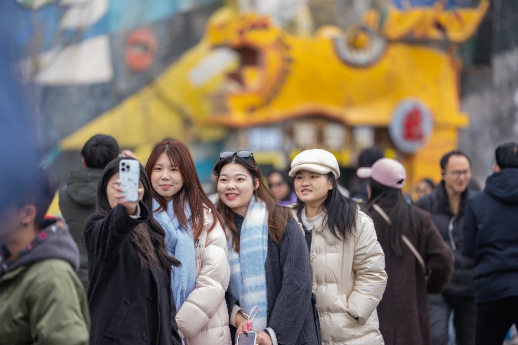 1月5日,游客在重慶九龍坡區藝術公園拍照打卡。