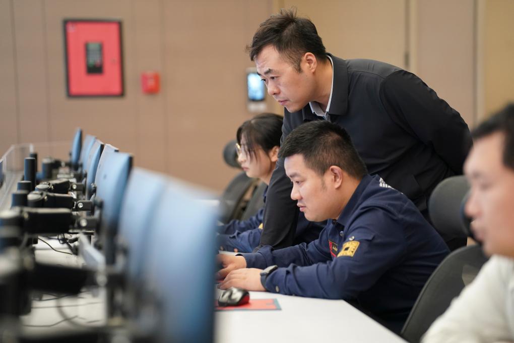 工作人員通過“西安城墻數字方艙綜合管理平台”開展工作(2025年9月10日攝)。