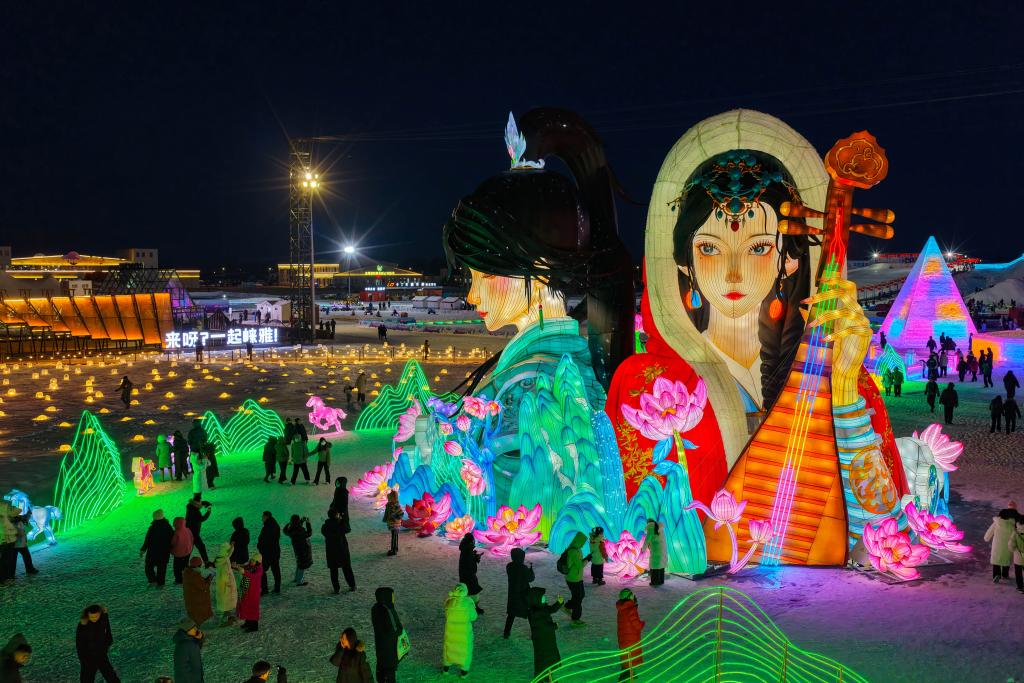 人們在呼和浩特第五屆歡樂冰雪節上游玩(2025年12月31日攝)。