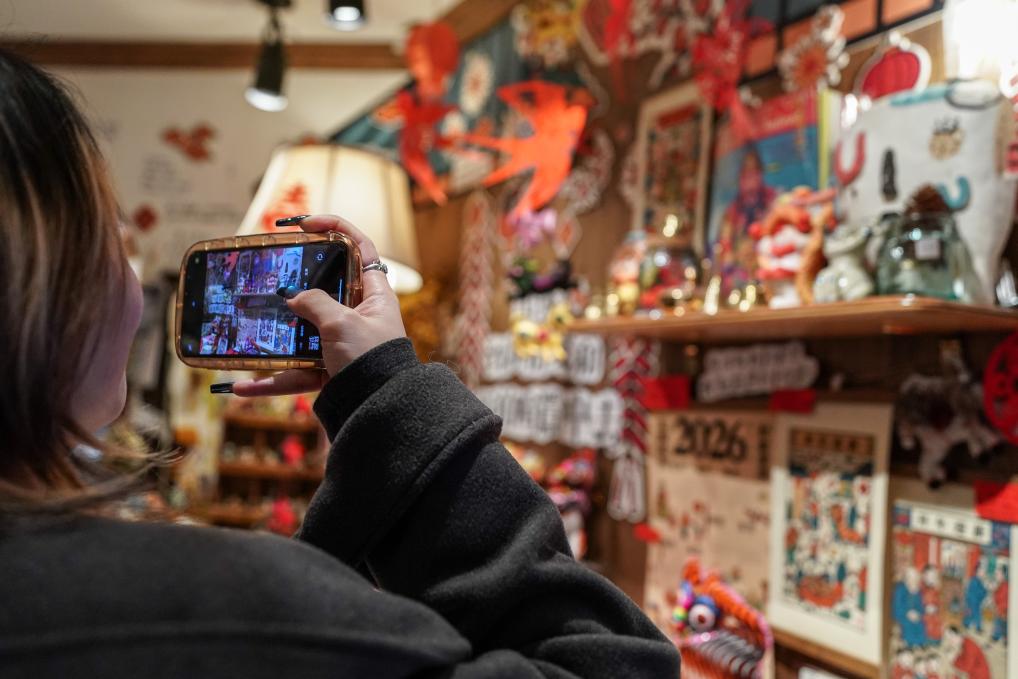 1月13日,游客在翠湖畔的特色書店拍照打卡。