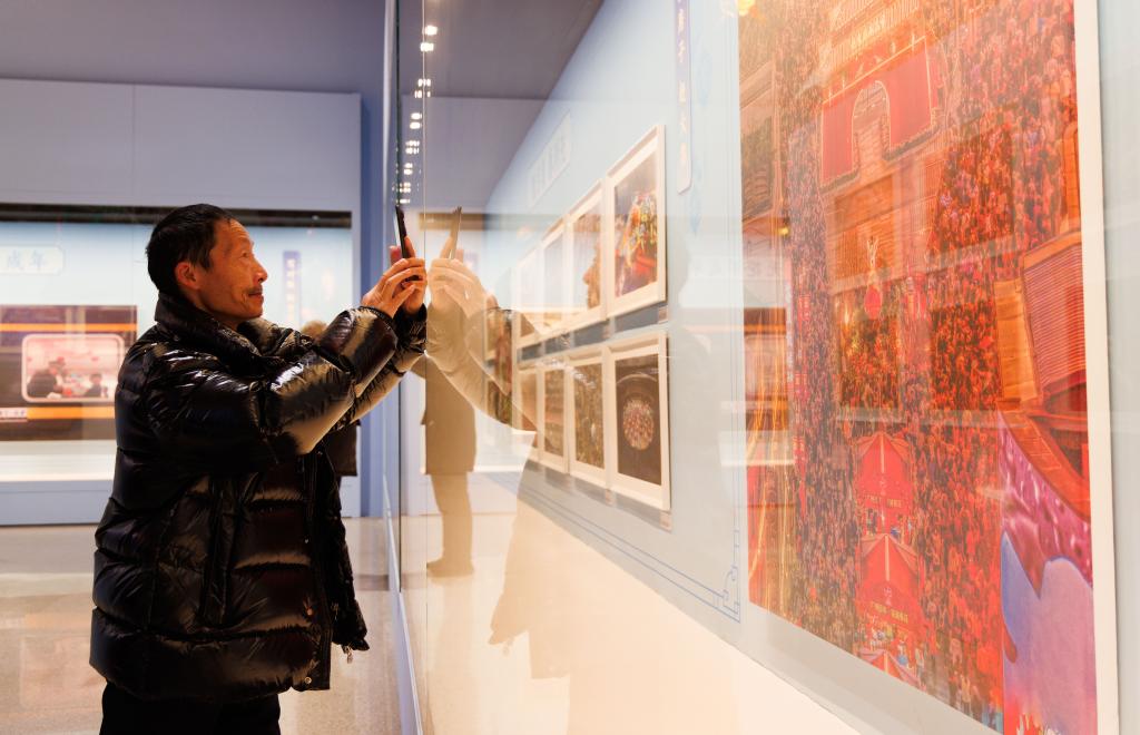 1月26日,在中國非物質文化遺産館舉行的展覽現場,觀眾用手機拍攝展覽作品。