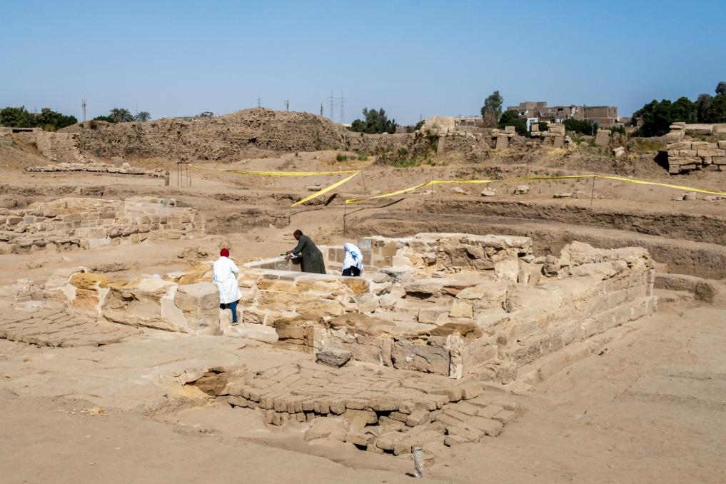 中埃盧克索孟圖神廟聯合考古隊24日宣布,在埃及盧克索省卡爾納克孟圖神廟遺址區成功清理出一座此前未知的聖湖建築遺跡。