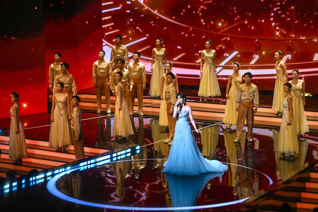 11月11日晚拍攝的2025年中國金雞百花電影節開幕式現場。新華社記者 周義 攝