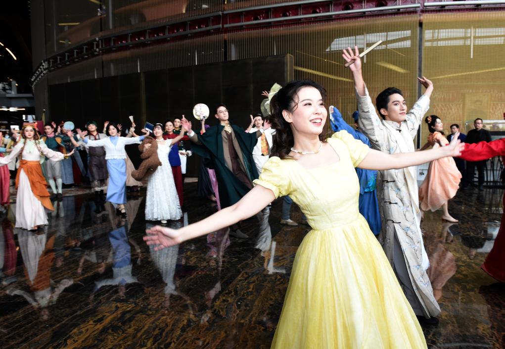 12月22日,演員在國家大劇院公共空間與觀眾互動。新華社記者 羅曉光 攝