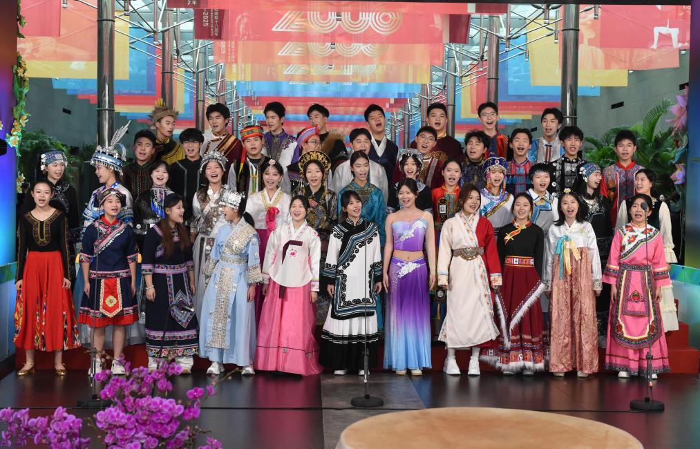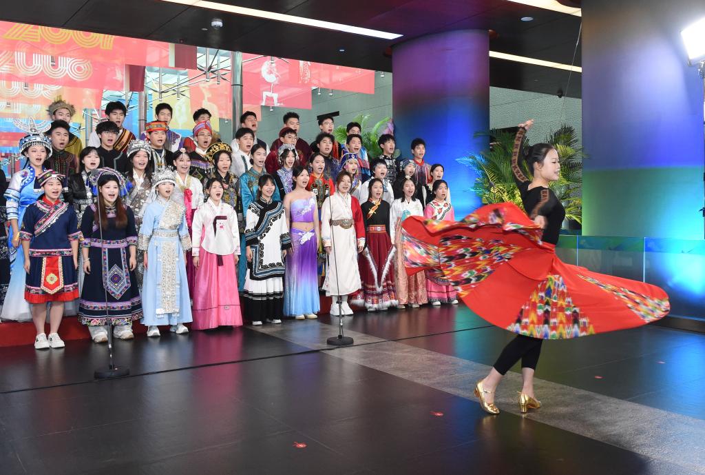 12月22日,青少年合唱團在國家大劇院北門入口處合唱迎賓。新華社記者 羅曉光 攝