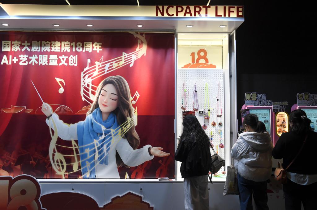 12月22日,觀眾在國家大劇院選購文創産品。新華社記者 羅曉光 攝