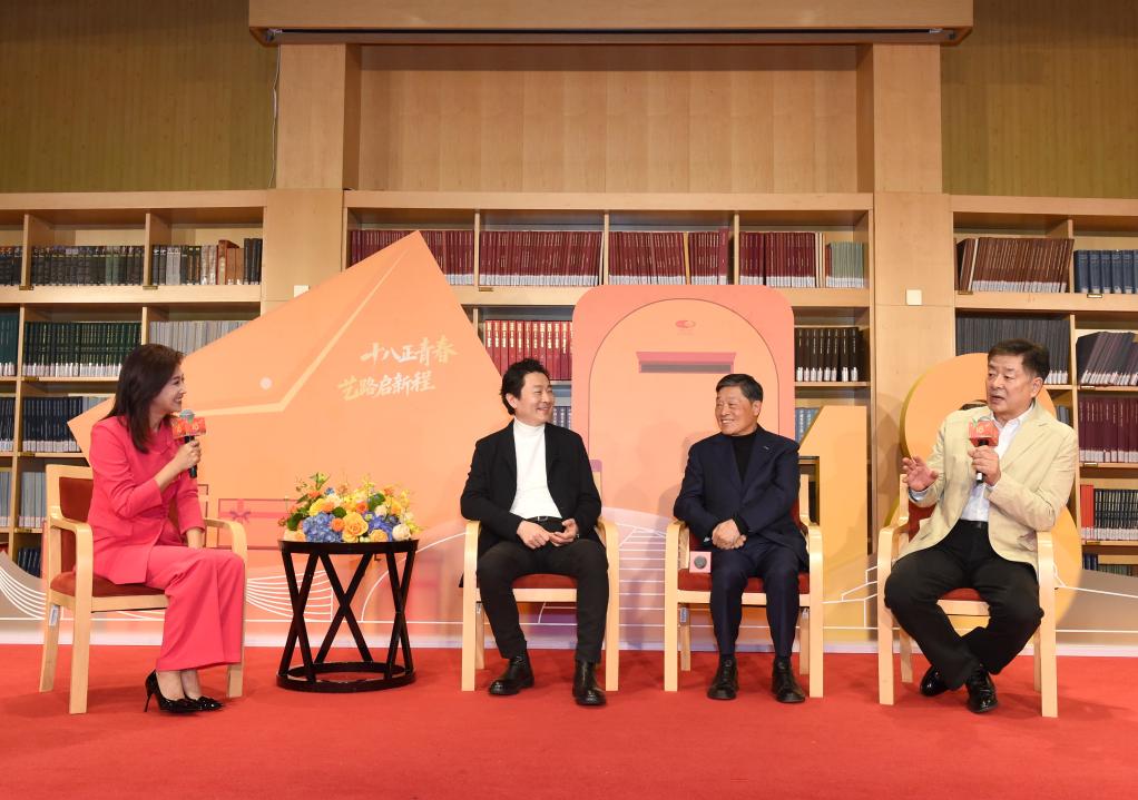 12月22日,表演藝術家濮存昕、國家大劇院原創話劇《金中都》編劇熊召政、小提琴藝術家呂思清(從右至左)在國家大劇院講述他們與大劇院共同成長的溫暖點滴。新華社記者 羅曉光 攝