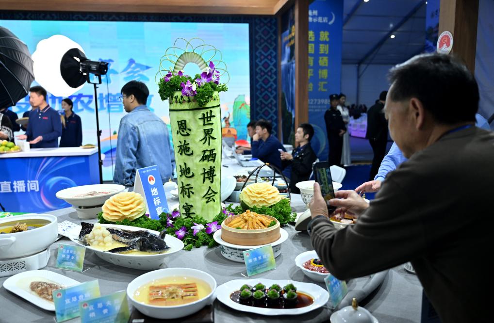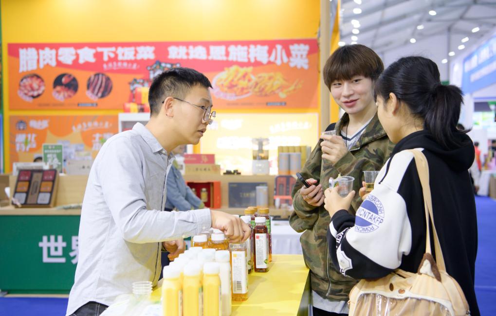 10月18日,工作人員在“硒博會”上推介富硒産品。