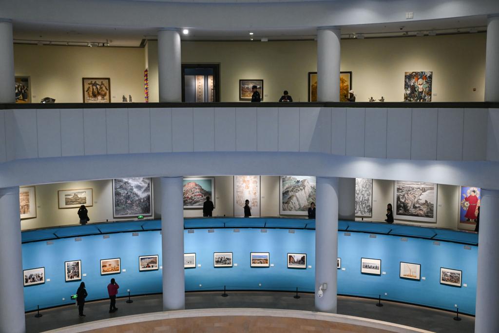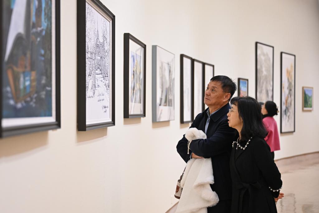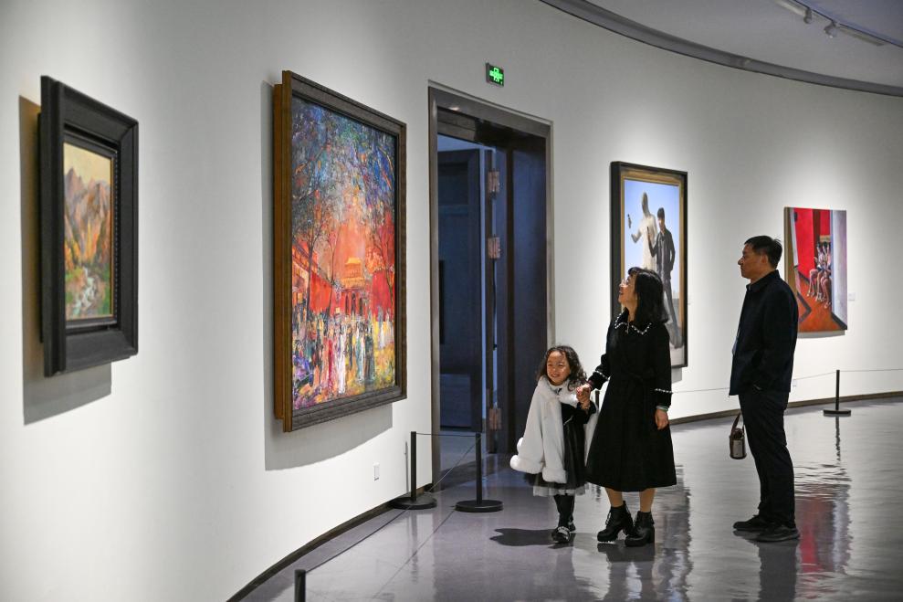 10月19日,參觀者在陜西省美術博物館欣賞藝術作品。
