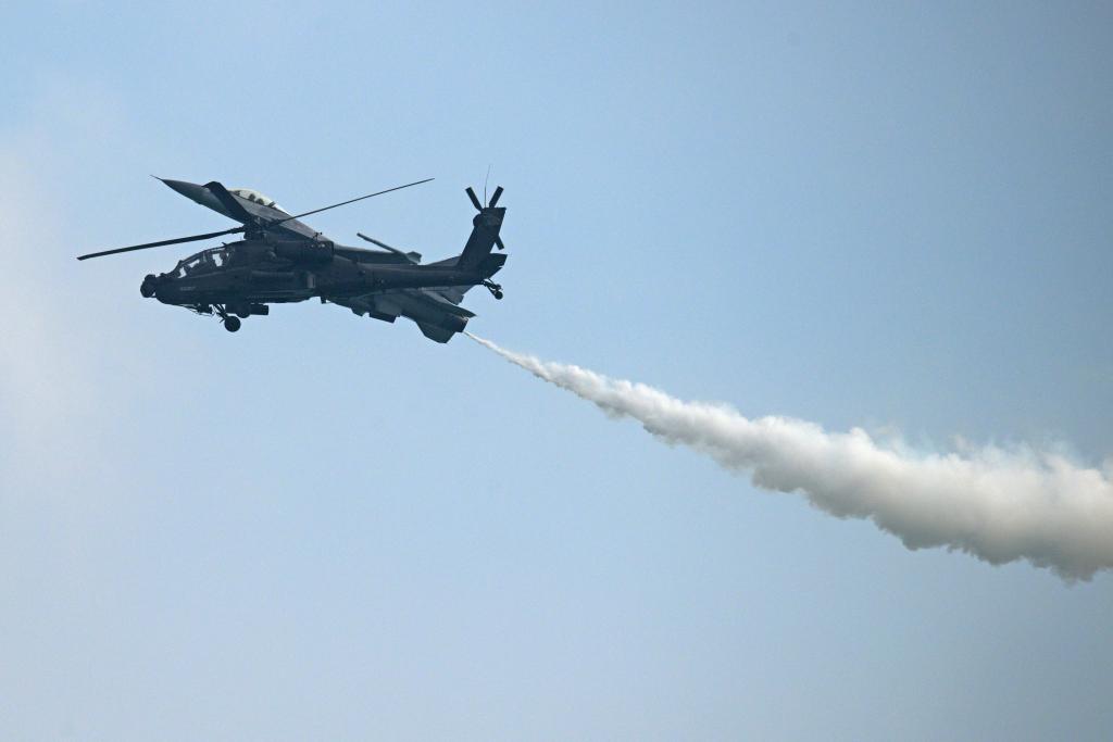 2月1日,在新加坡樟宜展覽中心舉行的新加坡航展媒體預演上,一架新加坡空軍阿帕奇AH-64D直升機進行飛行表演。