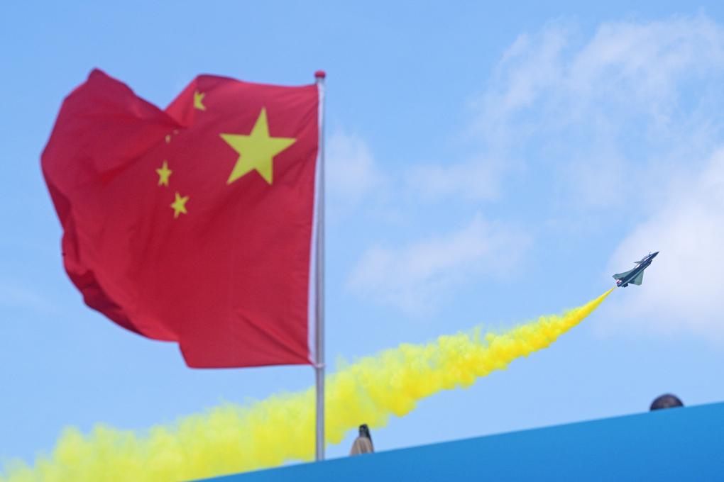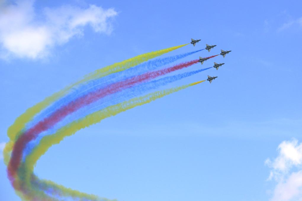 2月3日,中國空軍八一飛行表演隊在第十屆新加坡航展首日進行飛行表演。