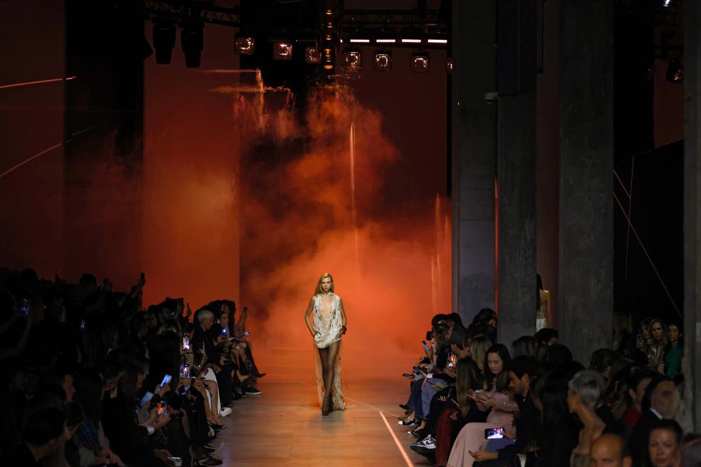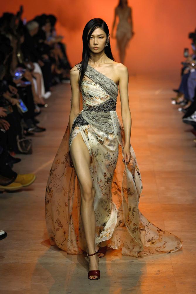 10月4日,模特在法國巴黎時裝周上展示Elie Saab品牌的2026春夏新品成衣。