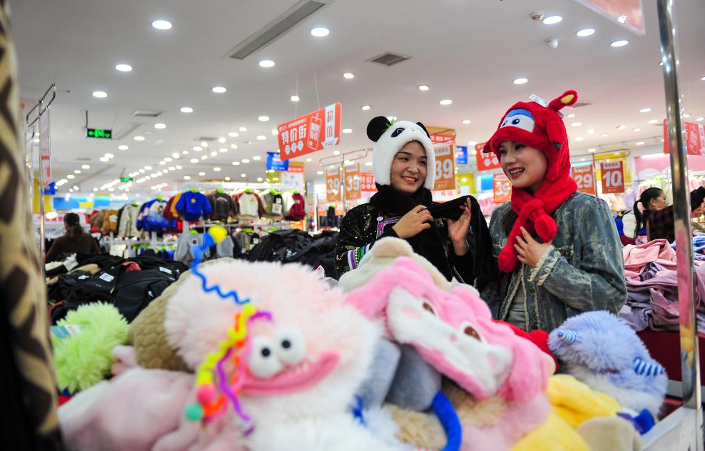 2023年11月26日,市民在貴州省黔東南苗族侗族自治州從江縣一家商店選購帽子。新華社發(盧忠南 攝)pagebreak