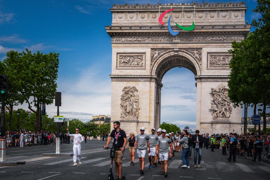 7月15日,奧運會火炬在巴黎傳遞。新華社記者 許暢 攝