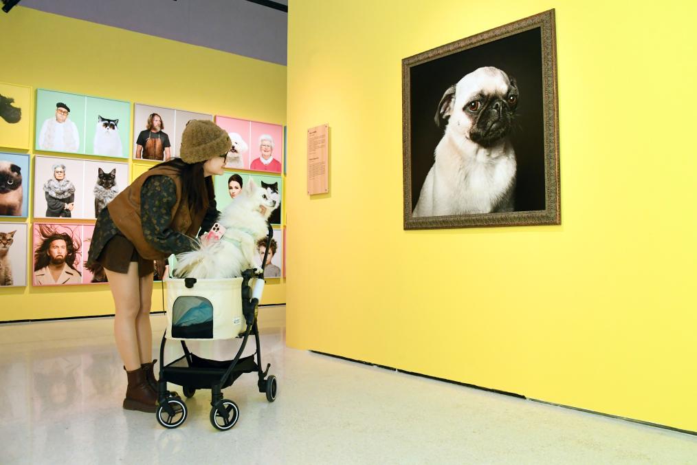 3月30日,觀眾在北京時代美術館參觀《寵物總動員》攝影展。新華社記者 任超 攝