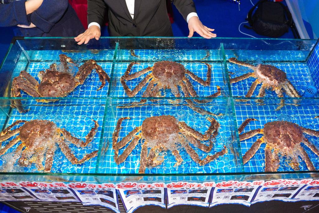這是2024年9月19日拍攝的吉林省琿春市一商家所售賣的帝王蟹。新華社記者 許暢 攝