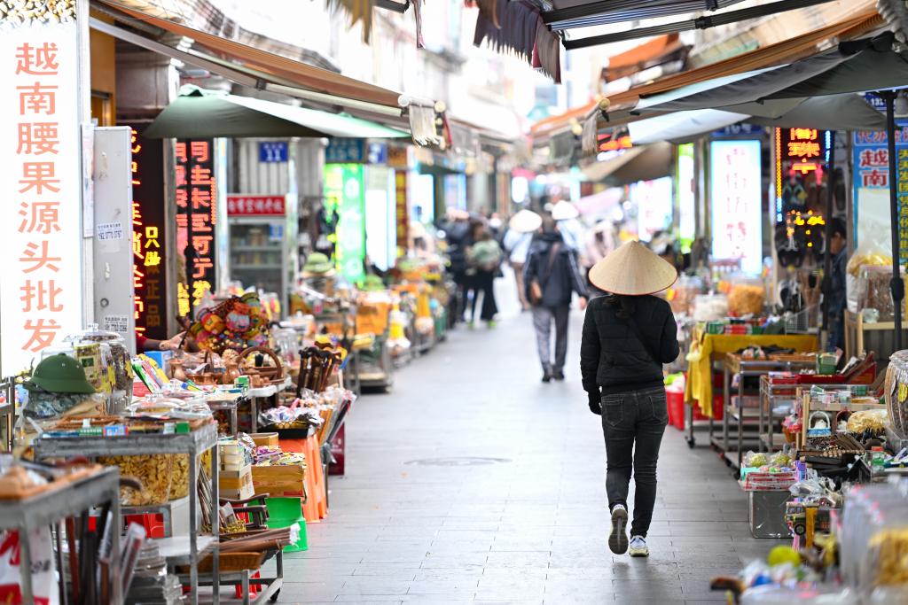 2025年1月8日拍攝的廣西東興街巷中售賣的各類越南特色産品。新華社記者 陳鐘昊 攝