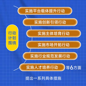 行動計劃圍繞實施平台載體提升行動、實施創新引領行動、實施主體培育行動、實施市場開拓行動、實施行業規範發展行動、實施人才培養行動等6方面,提出一系列具體措施。