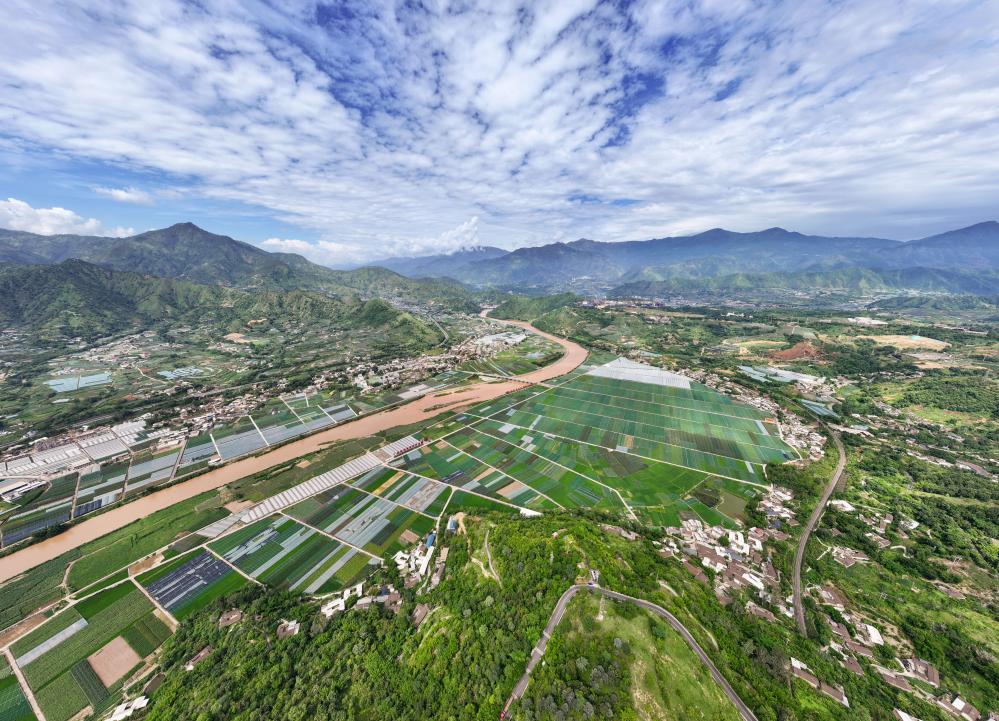 2025年7月9日拍攝的四川省攀枝花市米易縣撒蓮鎮安全村高標準農田(無人機照片)。新華社記者江宏景 攝