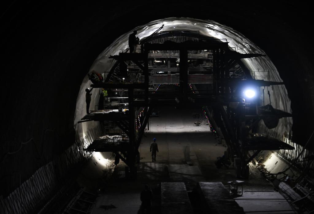 2月13日,中國鐵建大橋局工人在西延高鐵銅川隧道施工。新華社記者 張博文 攝