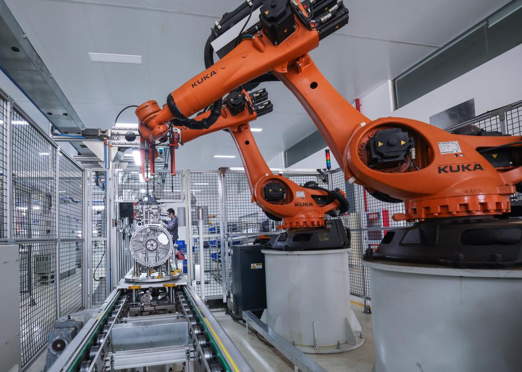 在位於金華市金東區一家公司的生産車間內,流水線上正在加工新能源汽車的智能增程器。新華社記者 徐昱 攝