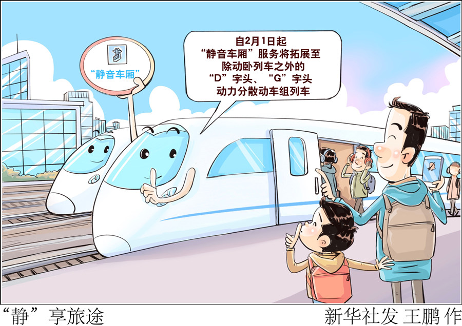 新華社北京1月17日電(記者樊曦)記者17日從中國國家鐵路集團有限公司獲悉,為進一步提升旅客出行體驗,鐵路部門大力推廣“靜音車廂”服務,自2月1日起,“靜音車廂”服務將拓展至除動臥列車之外的“D”字頭、“G”字頭動力分散動車組列車,屆時全國鐵路提供“靜音車廂”服務的列車將增至超8000列,更好地滿足廣大旅客對美好旅行生活的需求。