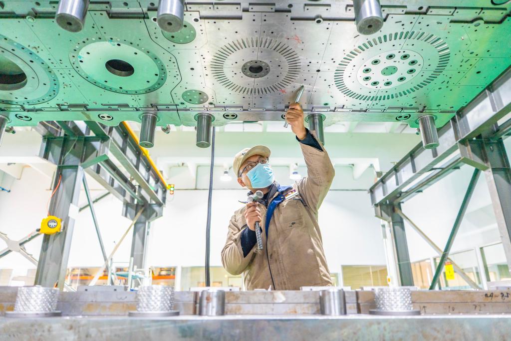 2025年12月15日,在位於江蘇省南通市通州區興仁鎮的江蘇富松模具科技有限公司車間內,工人趕制模具産品訂單。新華社發(翟慧勇攝)