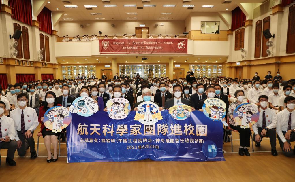 6月25日,在香港保良局甲子何玉清中學,北斗三號衛星首席總設計師謝軍為學生講演。新華社記者 王申 攝