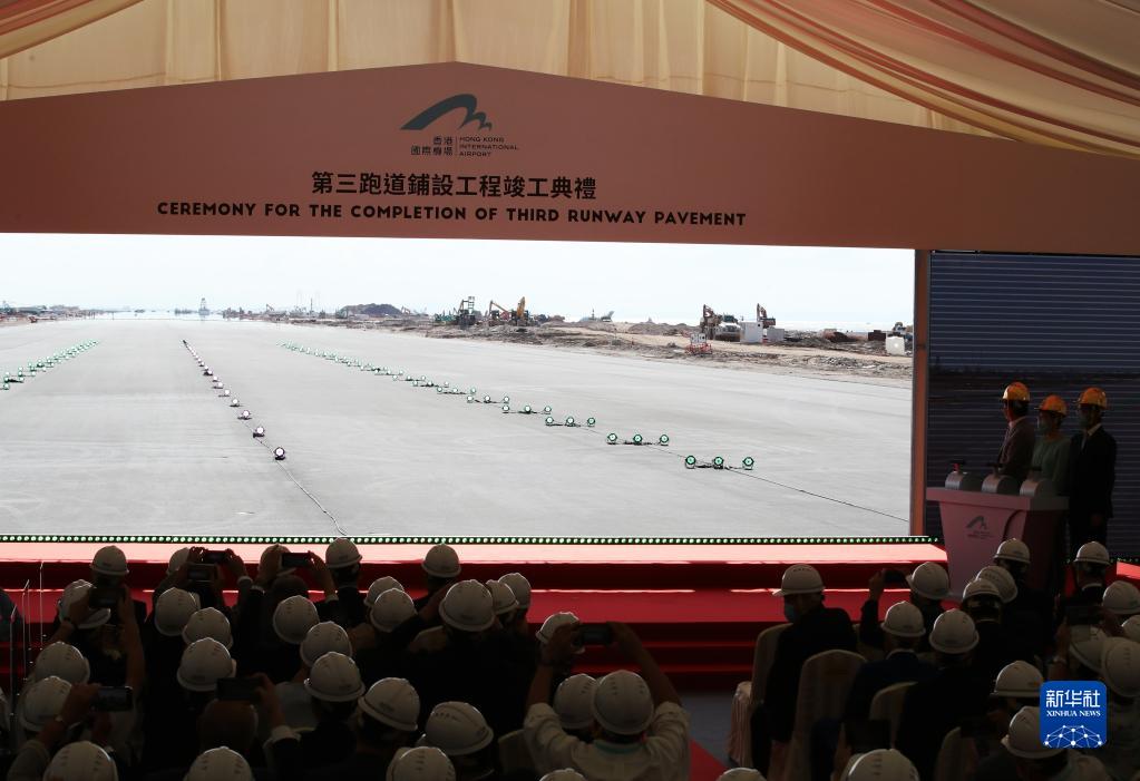 新華社香港9月7日電 香港國際機場第三跑道的鋪設工程近日完成,香港機場管理局於7日舉行竣工典禮,這是香港國際機場三跑道系統項目的重要里程碑。