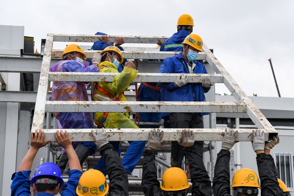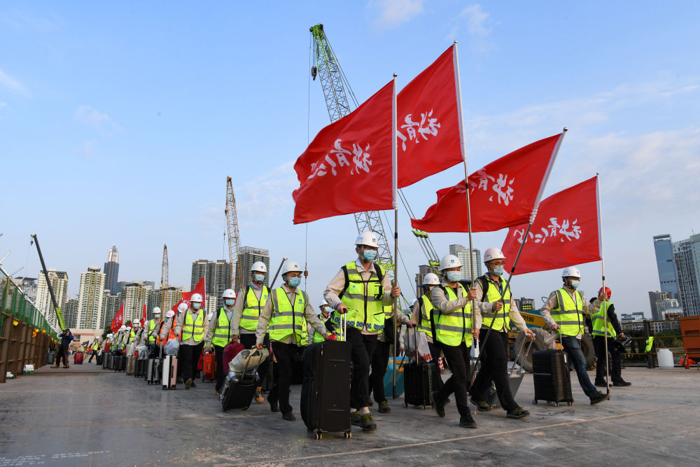那天,風展紅旗,晨曦如畫,“援港抗疫”的使命感寫在每一個人的臉上,閃爍在每個建設者的眼睛裏。他們中的大多數都是“80後”“90後”,身上涌動着“在國家需要時挺身而出”的青春熱血。