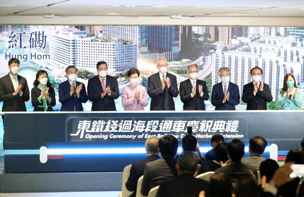 林鄭月娥説,隨着屯馬線去年全線開通和15日紅磡至金鐘段通車,一個貫通東西南北的鐵路網絡將為香港市民帶來更大的出行方便。