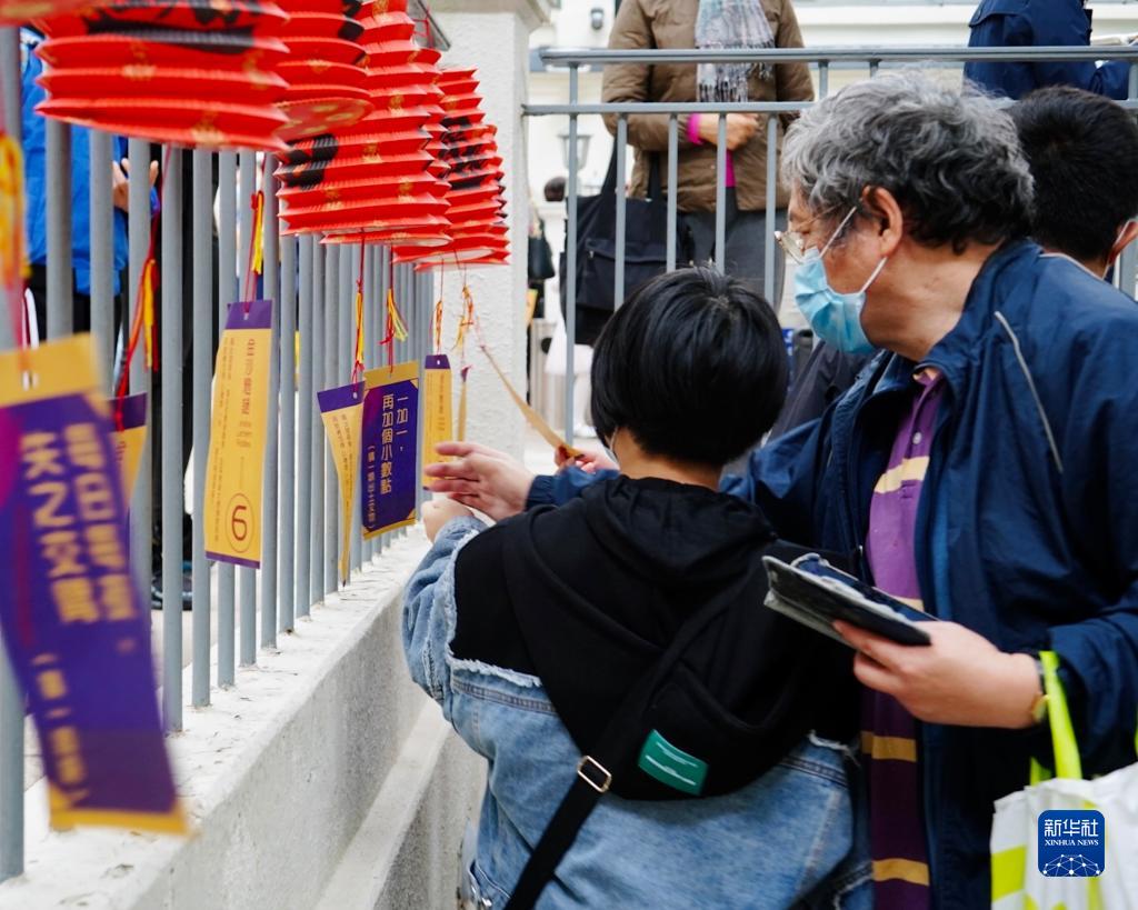 2月5日,參觀者在香港文物探知館舉行的“金沙元宵游園會”中猜燈謎。新華社記者 褚萌萌 攝