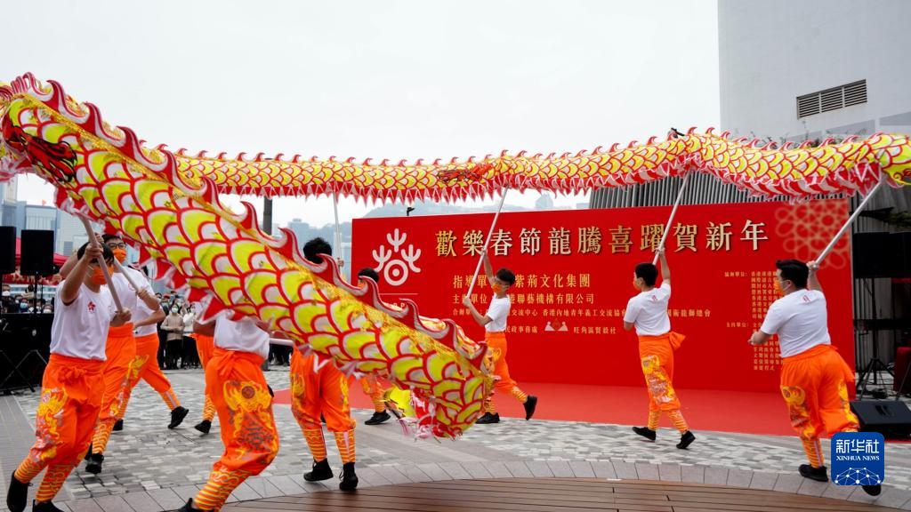 2月5日,青少年在尖沙咀星光大道“歡樂春節龍騰喜躍賀新年”活動中表演舞龍。新華社記者 褚萌萌 攝