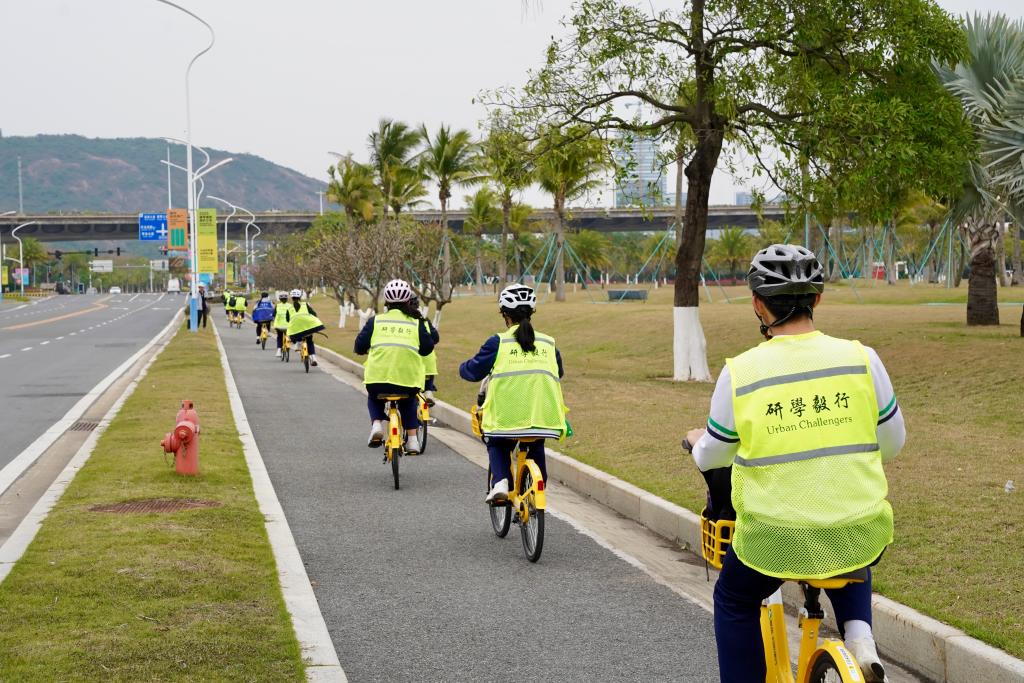 2025年3月18日,澳門教業中學學生從橫琴國家濕地公園騎行出發。新華社記者 郭雨祺 攝