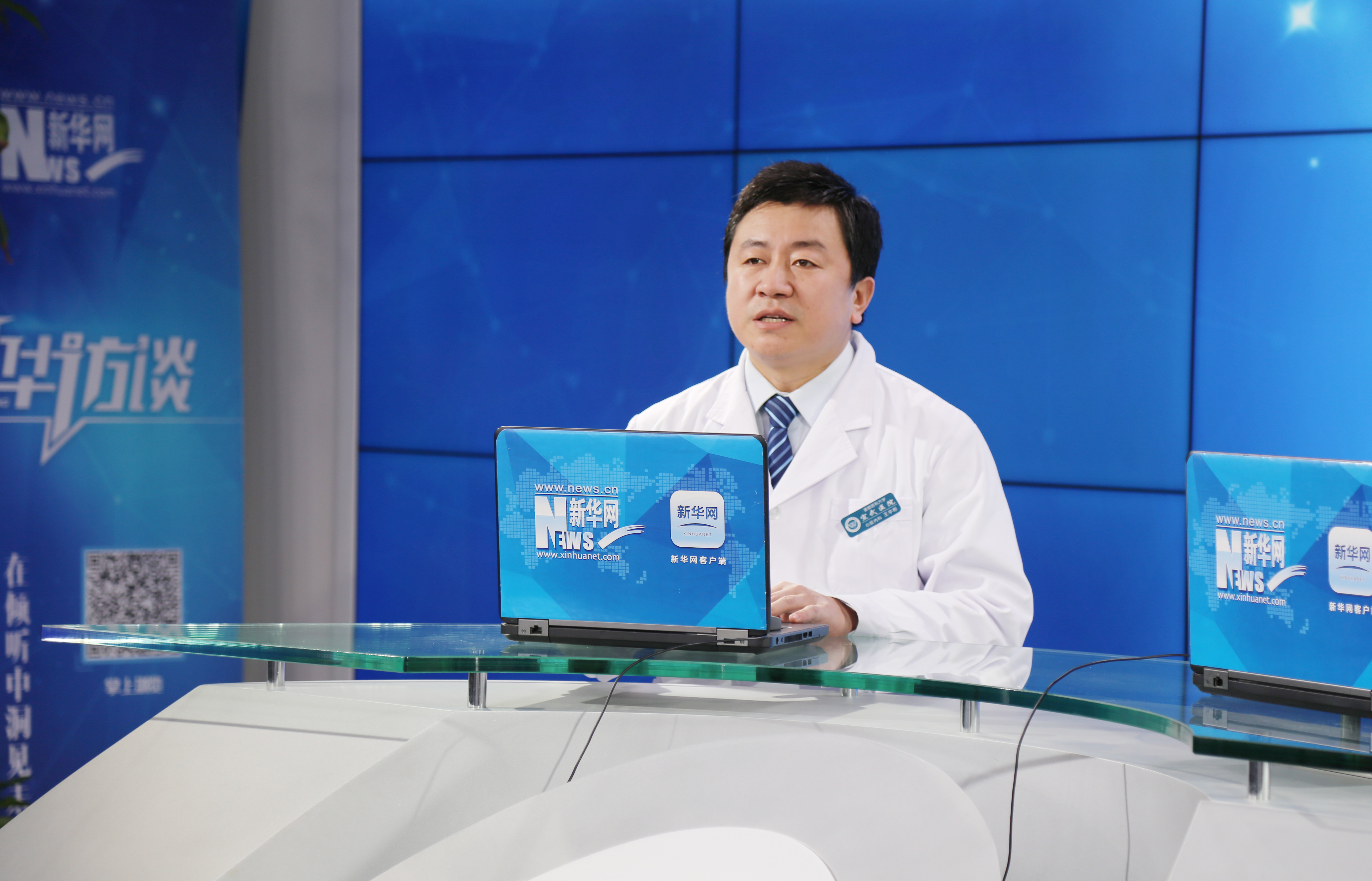 圖為宣武醫院心內科主任醫師王宇彬(左)在新華網訪談間接受專訪 李然攝