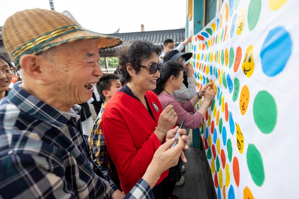 5月6日,居民在浙江省湖州市吳興區田盛街手繪笑臉。