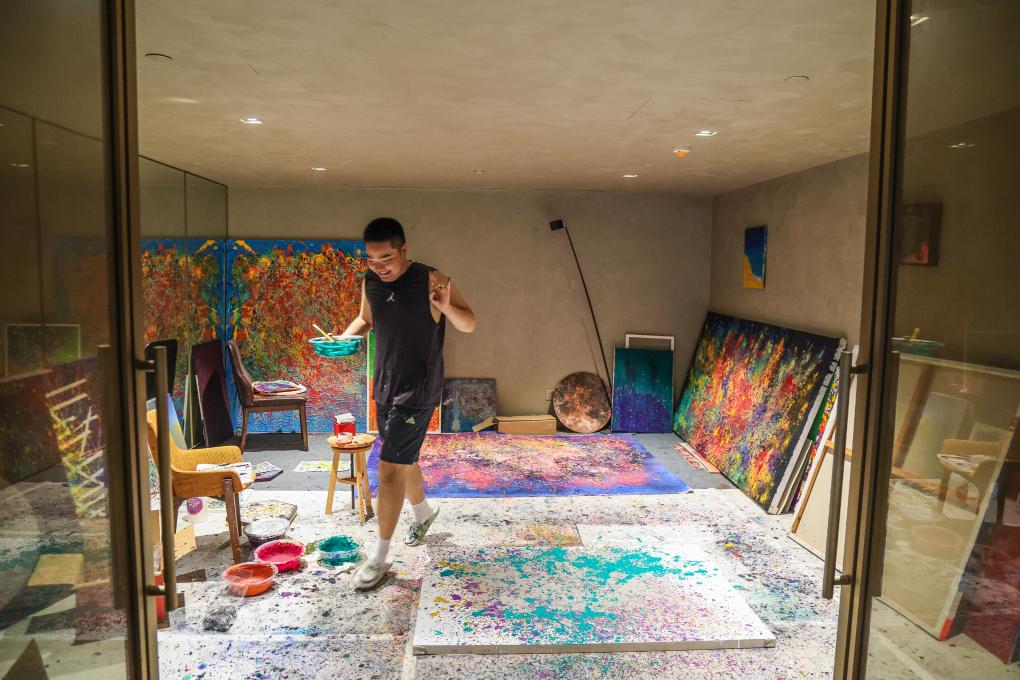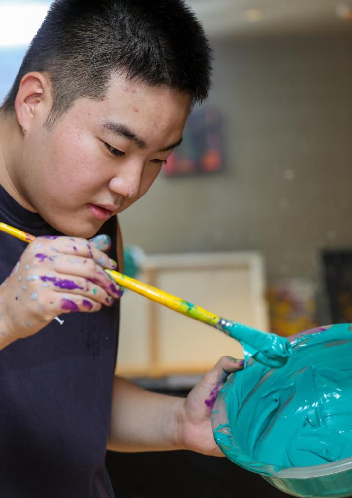 為幫他康復,父母嘗試了乒乓球、輪滑、音樂等多種訓練。美術課上,王劍書展現出對色彩的敏感,他選用的顏色看似大膽碰撞,搭配在一起卻格外和諧舒適,充滿靈動創意。老師將這個發現告訴王劍書的母親,建議着重培養他的藝術能力。