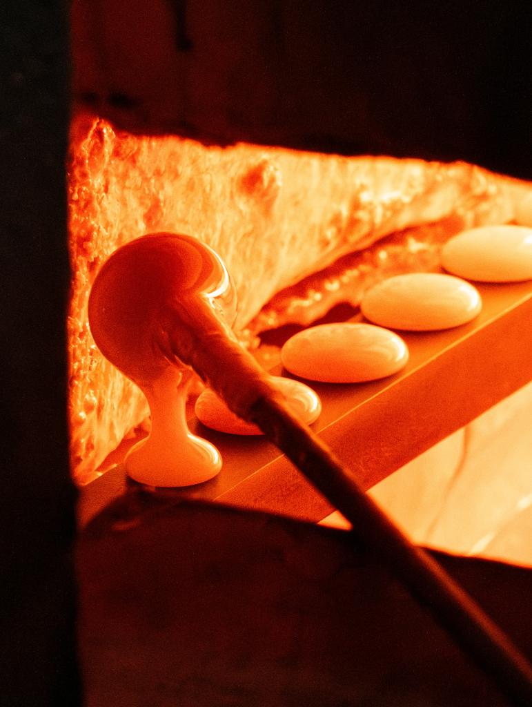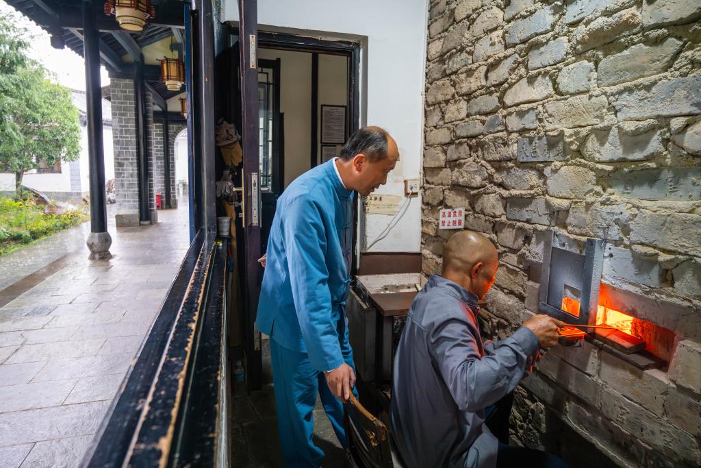 走進位於保山市隆陽區金雞鄉的永子文化園,上千度的窯爐晝夜不息。永子第十二代傳人、國家級非遺傳承人李國偉坐於爐前,目光如炬。他右手持特製滴棒,從容蘸裹熔化的玉料,將其輕巧滴瀝在左手所持的厚鐵板上。在一點一收間,一枚枚瑩潤細膩的永子從火紅的液態逐漸凝固成扁圓的固態,在鐵板上整齊排列。“這看似機械、快速的動作,至少需要六七年的苦練才能達到心手合一,”李國偉説,“因為滴制永子沒有模具,大小薄厚全憑經驗和手感。”40多度的室溫環境下,火光照映在李國偉臉上,汗水浸濕衣衫,他卻氣定神閒,一氣呵成,幾分鐘就滴制出一盤大小、薄厚統一的棋子。