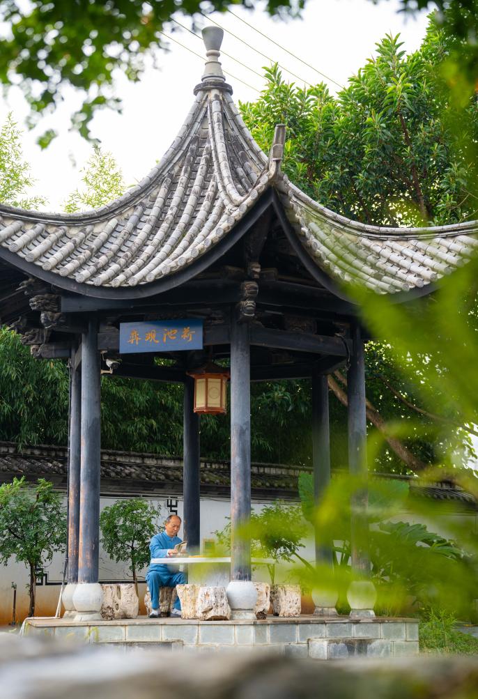 11月19日,李國偉在保山市永子文化園研究棋譜。