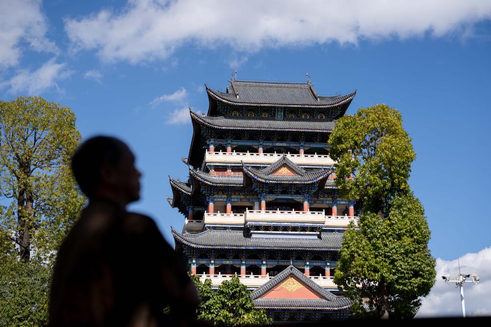11月20日,李國偉在保山市永子棋院永昌閣前遠眺。
