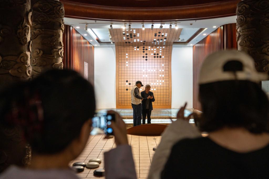 11月20日,游客在保山市永子棋院內的永子博物館拍攝圍棋藝術裝置。