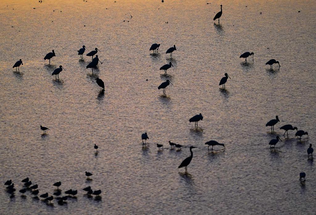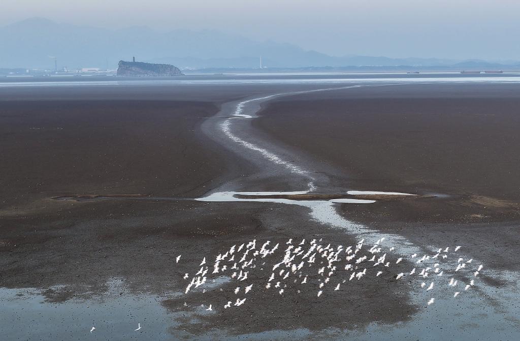 冬日暖陽灑滿鄱陽湖,江西省湖口縣鄱陽湖鞋山水域一派生機盎然。連日來,東方白鸛、白琵鷺等珍稀越冬候鳥,或翩躚棲息於灘塗,或低頭在淺水中覓食,繪就成一幅和諧共生的生態畫卷。
