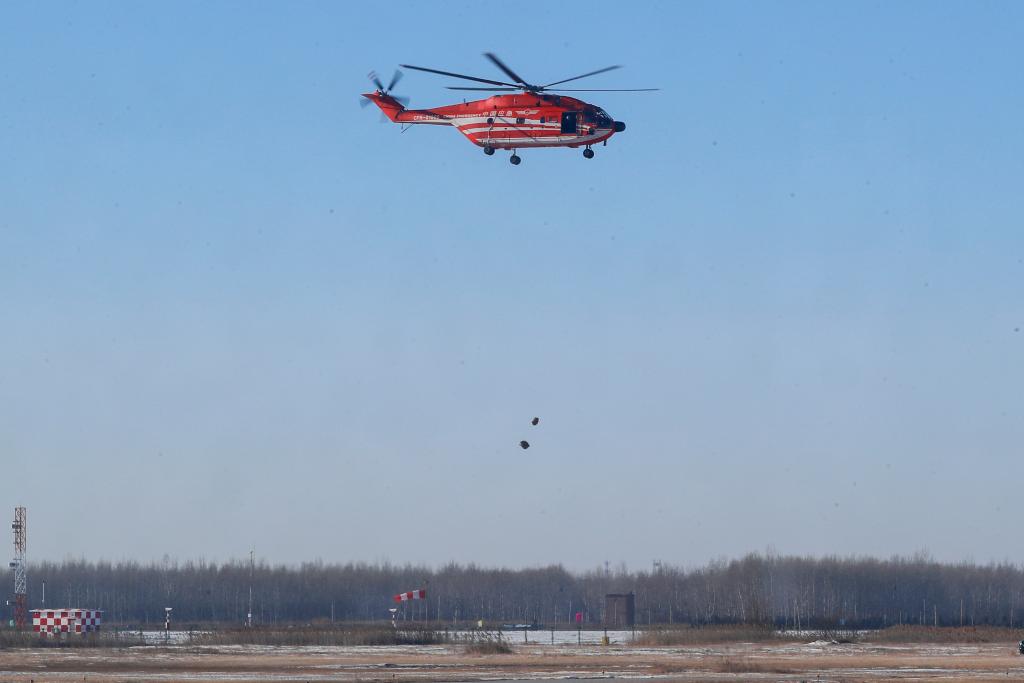 1月29日,在空投實戰化訓練現場,救援直升機完成精準空投。