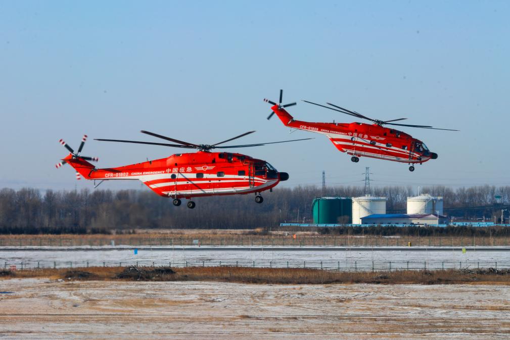 1月29日,在空投實戰化訓練現場,救援直升機增速飛向空投預定地點。