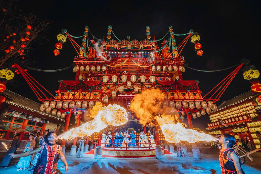 6月2日晚,演員在河北省唐山市豐南區河頭老街景區為游客演出。
