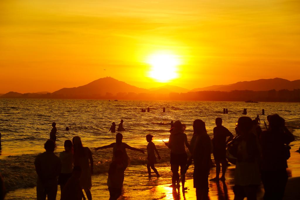 6月2日,游客在海南省三亞市三亞灣戲水游玩。